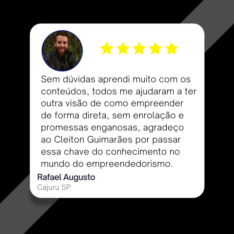 Se você quer empreender do zero, melhorar os resultados do seu negócio ou até mesmo sair da CLT para construir sua própria renda, este curso foi feito para você. Ele ensina o que realmente funciona. Seja você um iniciante ou alguém que já empreende, aqui você encontrará um caminho claro e estratégico para alcançar o sucesso.